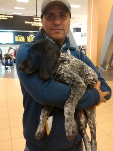 Byron Del Castillo de Calatrava, Today landed in Lima (Peru). Thank the new owner Mr. Santiago Chavez a great fan and great connoisseur of the Deutsch Kurzhaar. Thank you very much,for your patience and the effort in having a puppy Del Castillo de Calatrava Kennel.