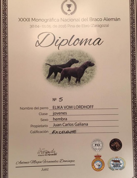 30Abr2016XXXII Monográfica Nacional del Braco Alemán (Spain). Elika Vom Lordhoff Excelente0 CommentJuan Carlos GalianaElika Vom NordhoffElika Vom Lordhoff el 29/04/2016 con 15 meses se celebro la XXXII Monográfica Nacional del Braco Alemán. (Spain) consiguiendo Excelente.